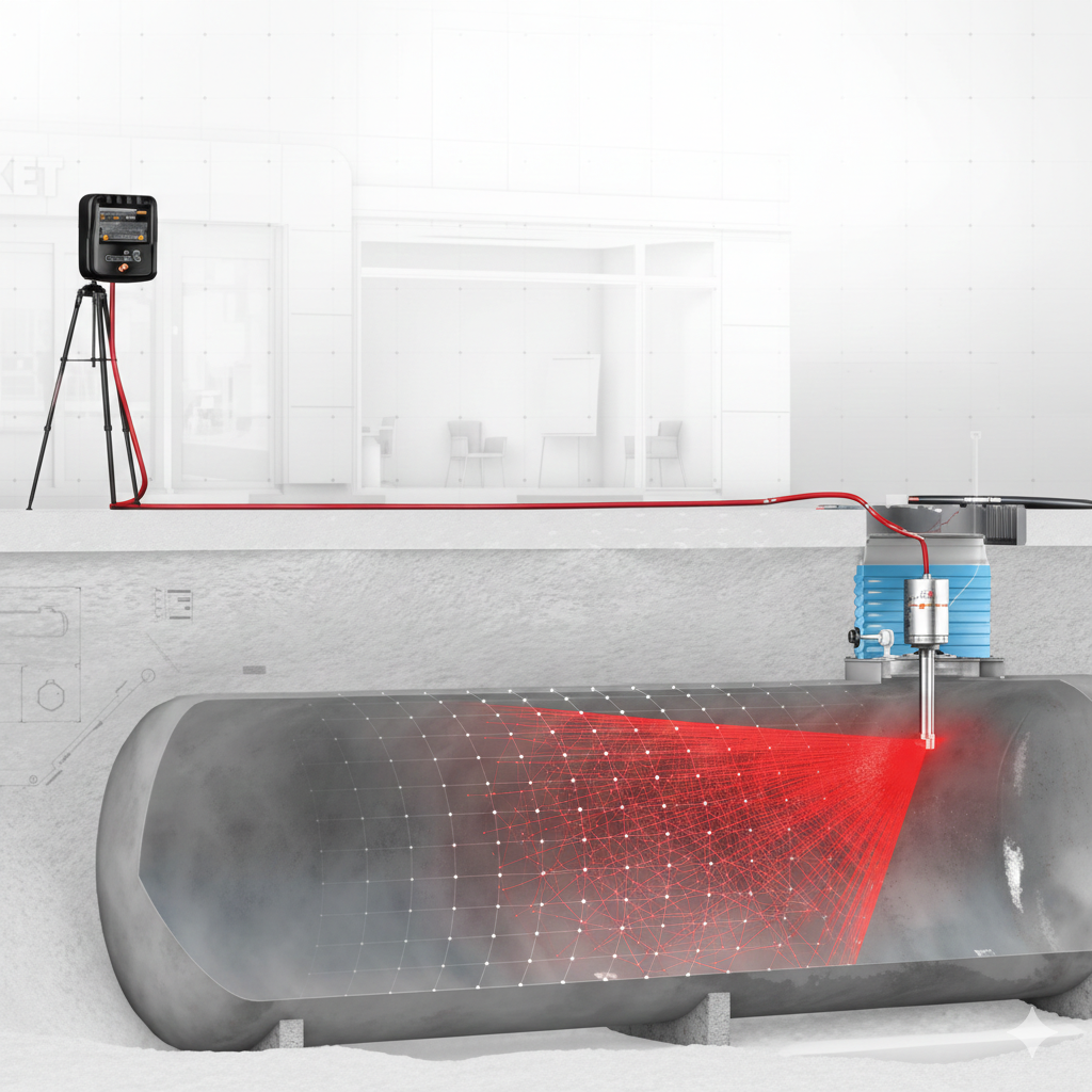 Système d'étalonnage laser 3D pour déterminer avec précision les dimensions intérieures de vos réservoirs de carburant.